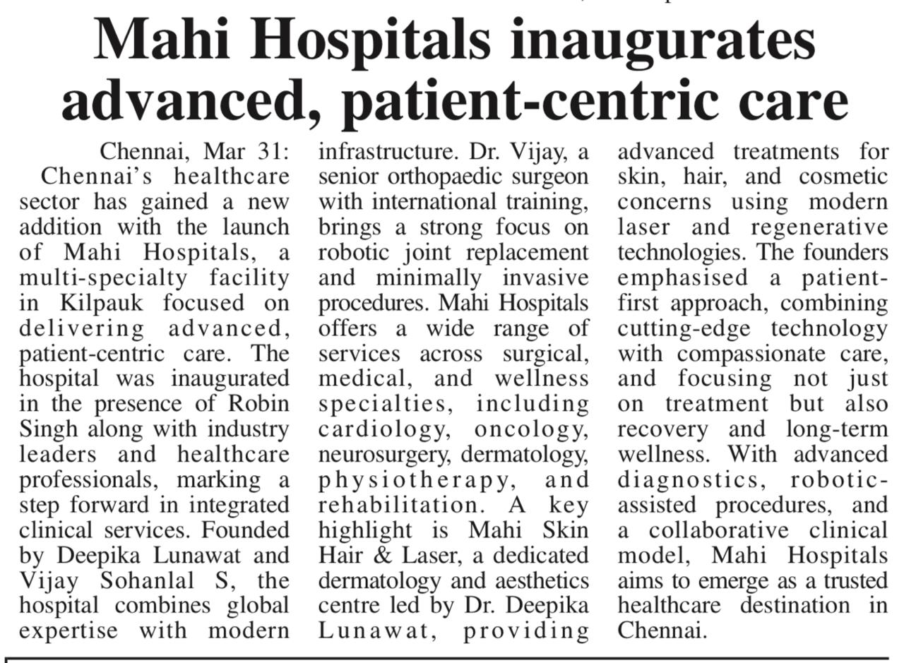 The inauguration of MAHI Hospitals represents a new chapter in accessible, reliable, and high-quality healthcare for the people of Chennai and surrounding regions.